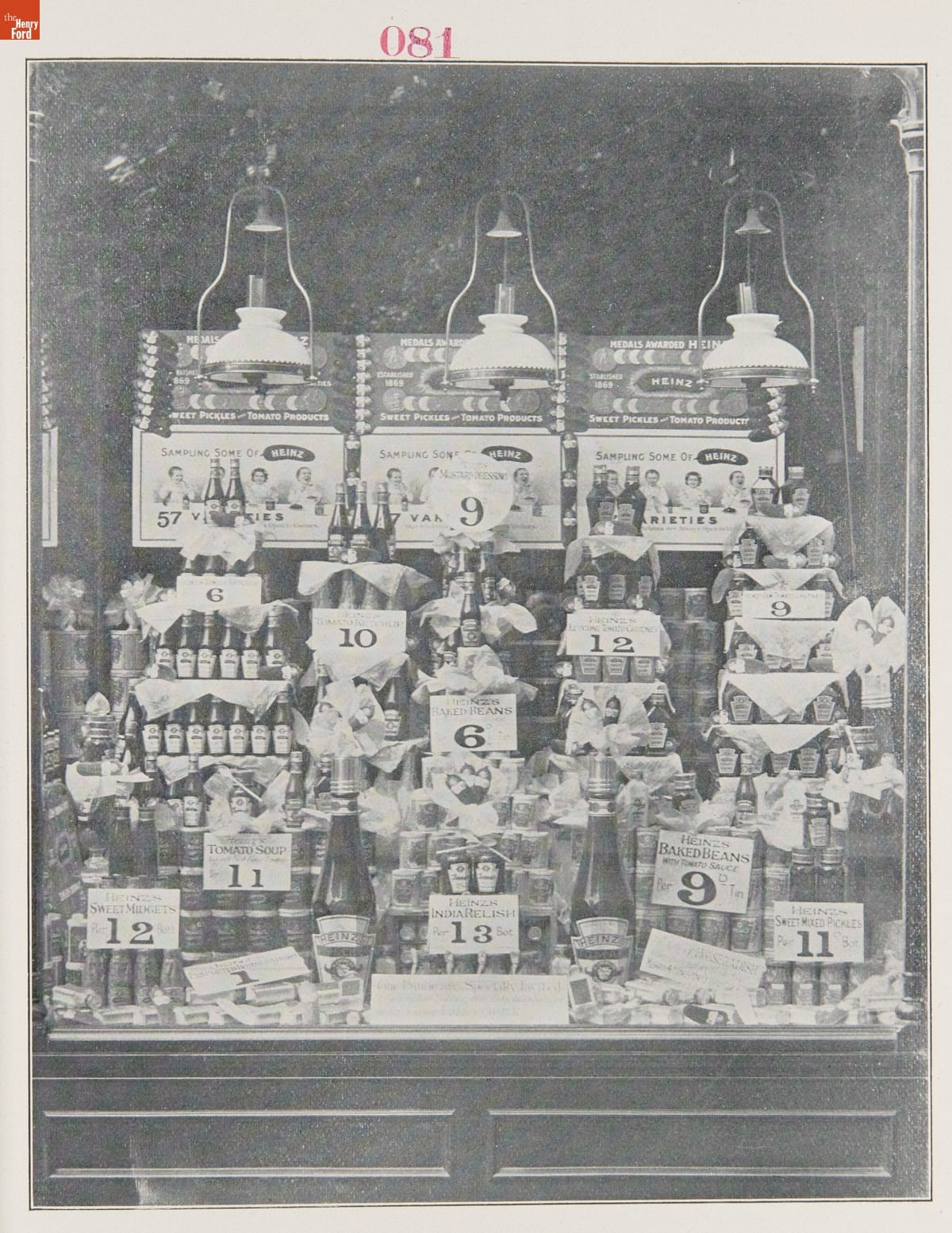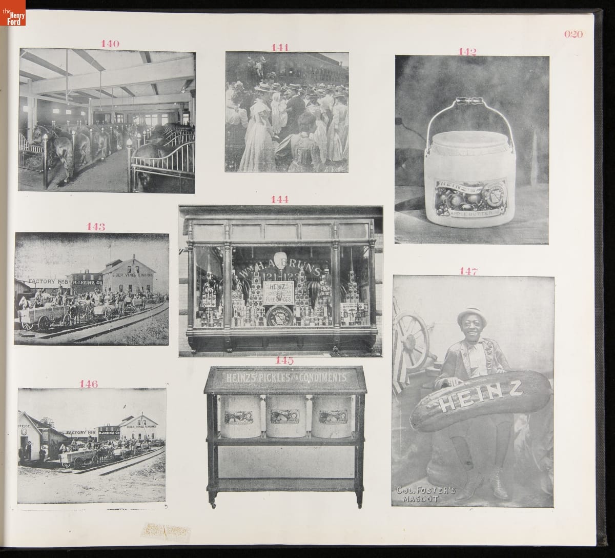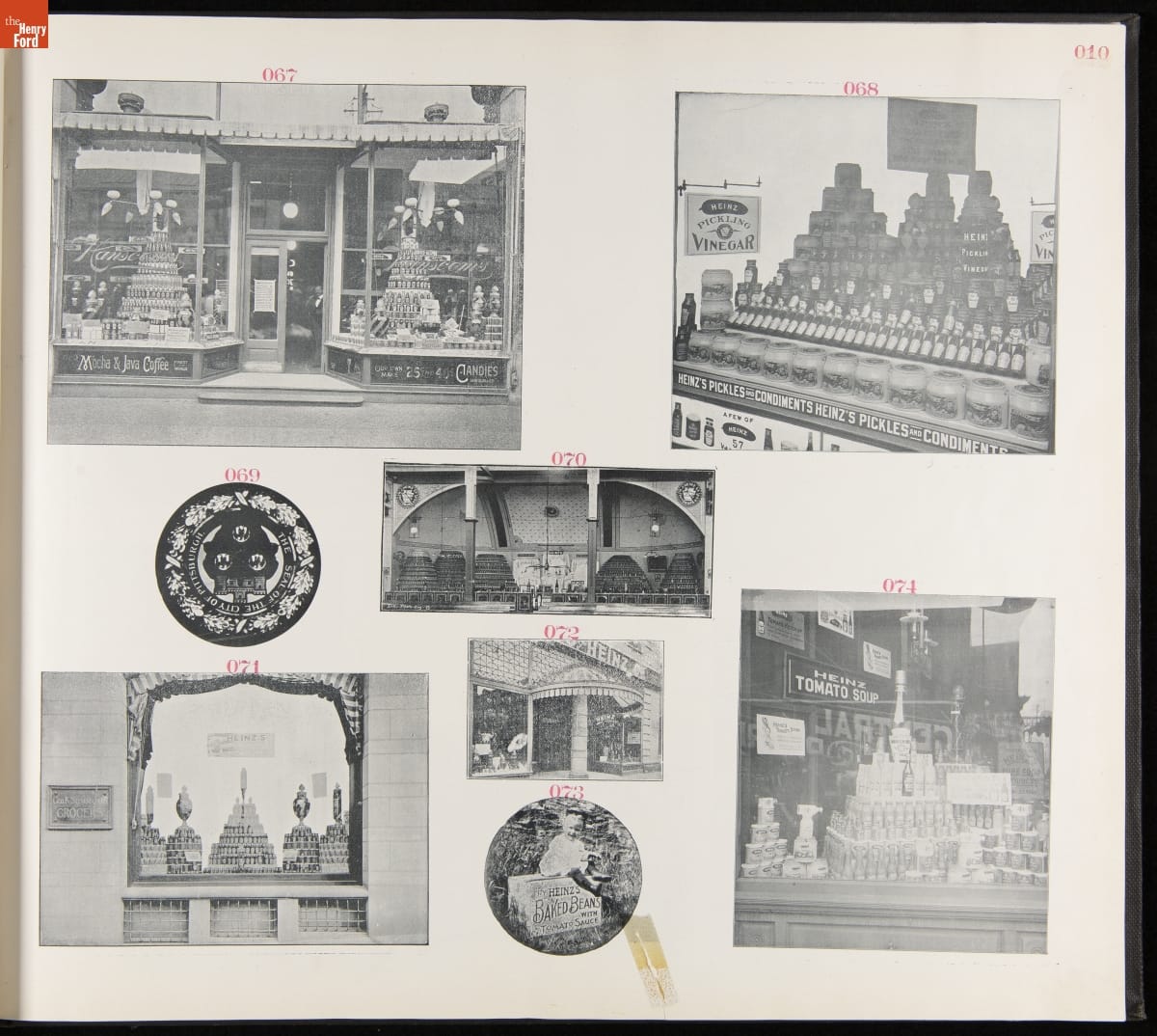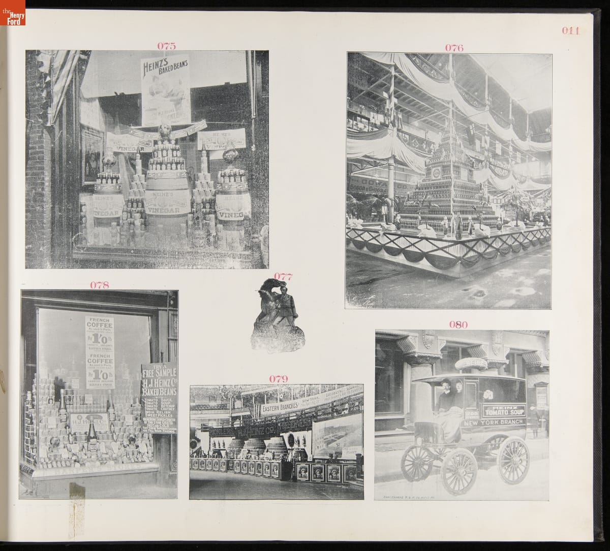The H.J. Heinz Company employed ambitious and comprehensive advertising strategies to meet consumers at home, in stores, and everywhere in between. At the time of this catalog's publication, Sebastian Mueller worked in the Heinz marketing department and compiled this book of half-tone photographs of window displays, exhibits, individuals, buildings, employees, and other advertisements for use in future advertising and publications.