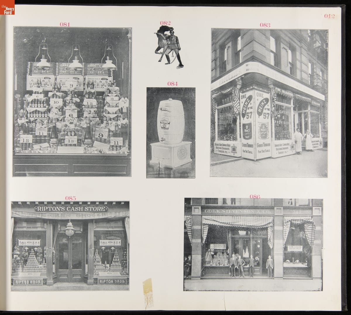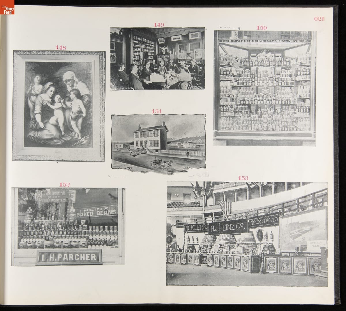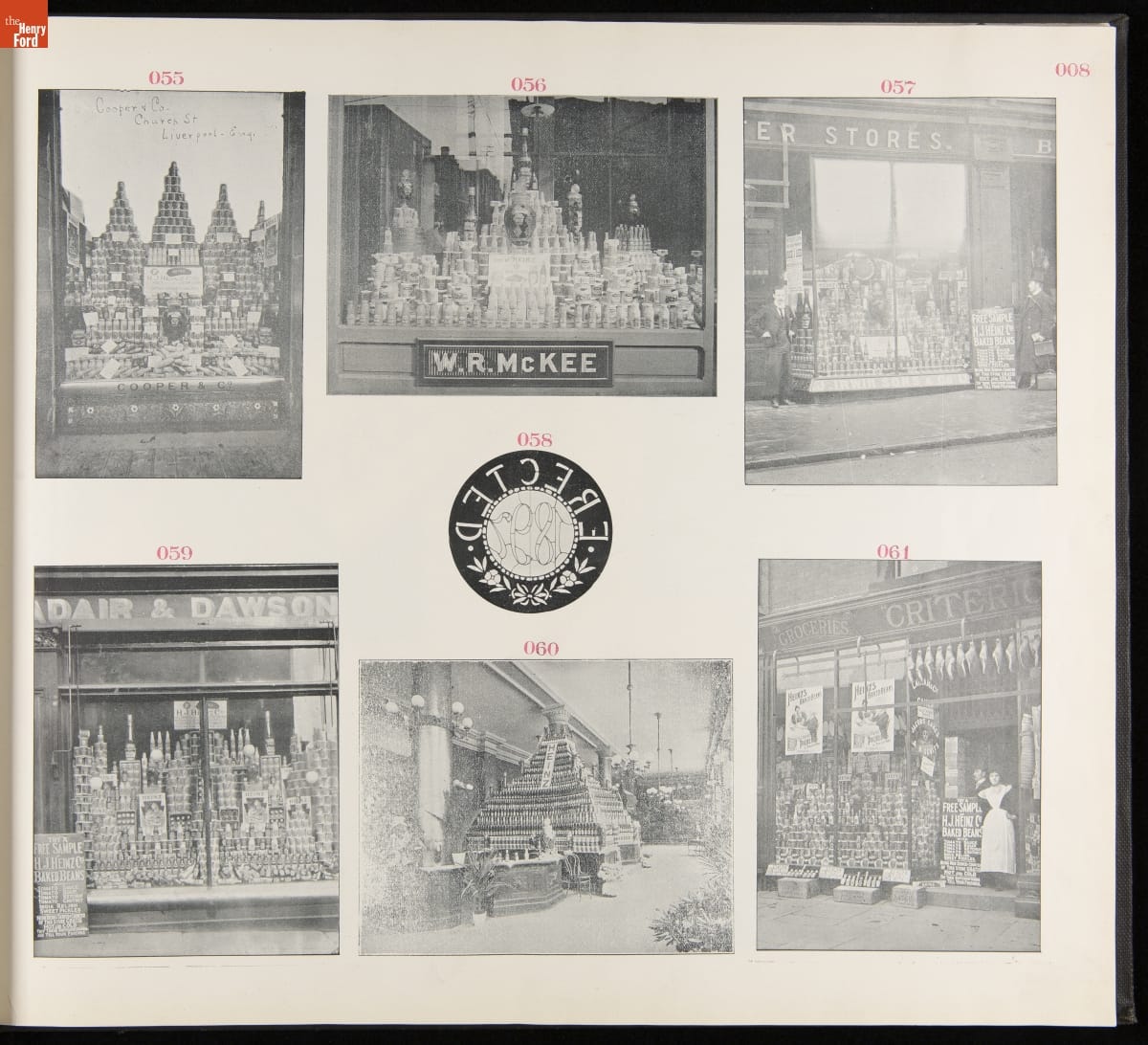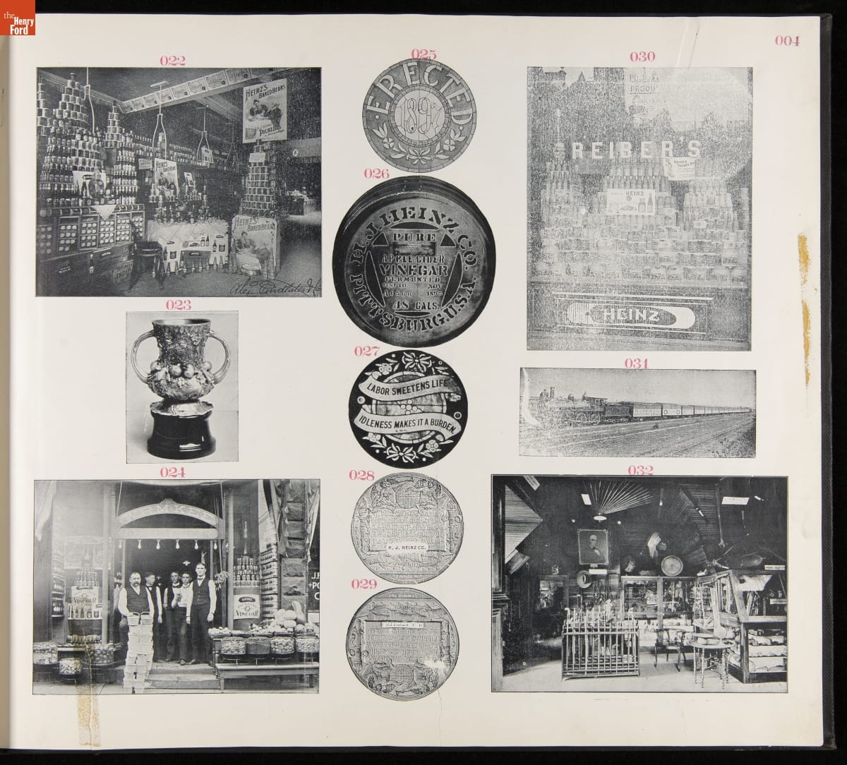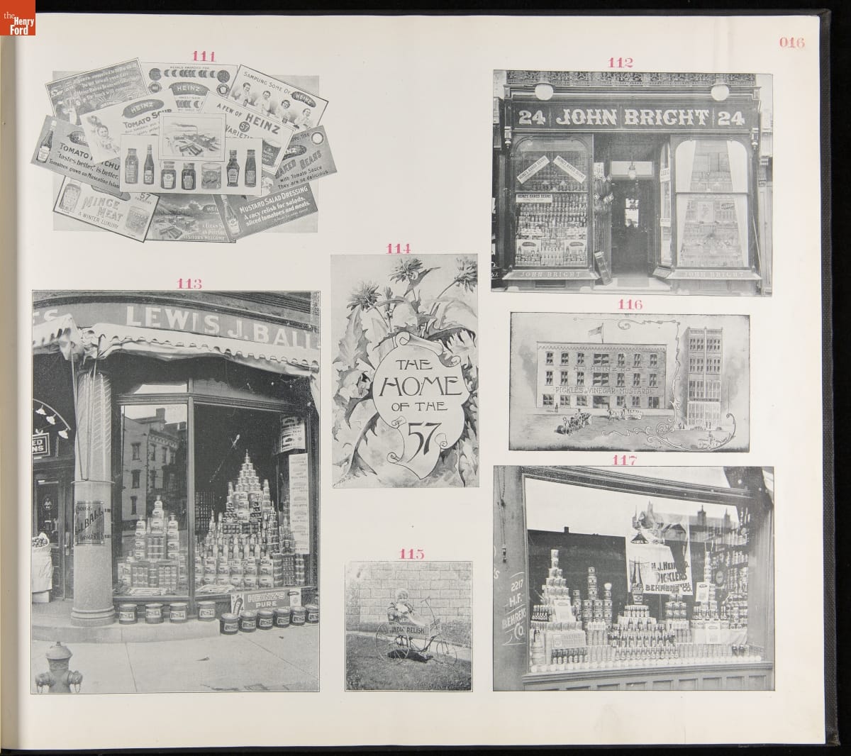 The H.J. Heinz Company employed ambitious and comprehensive advertising strategies to meet consumers at home, in stores, and everywhere in between. At the time of this catalog's publication, Sebastian Mueller worked in the Heinz marketing department and compiled this book of half-tone photographs of window displays, exhibits, individuals, buildings, employees, and other advertisements for use in future advertising and publications.