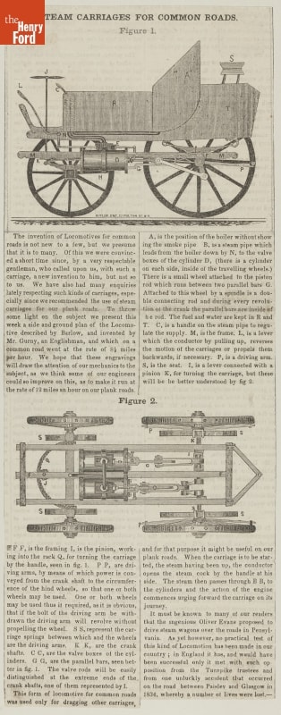 British inventor Goldsworthy Gurney built a series of self-propelled steam carriages in the 1820s. Although successful technologically -- one of Gurney's carriages made the 100-mile trip from London to Bath at an average speed of 15 miles per hour -- the vehicles failed commercially. The growing British railroad network and pressure from horse-carriage interests forced Gurney out of business.