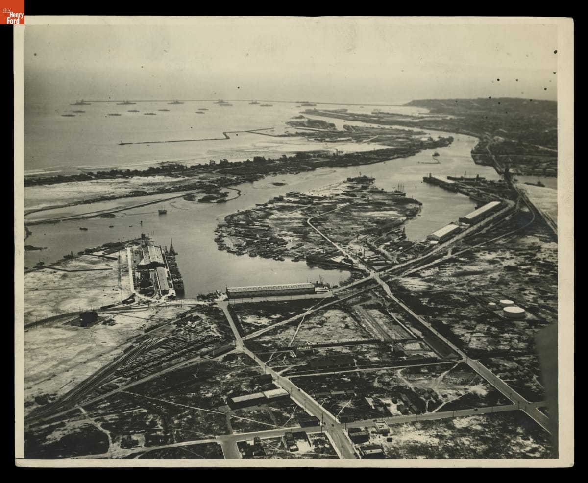 Aerial View of Los Angeles Harbor and Part of the Pacific Fleet, circa 1922