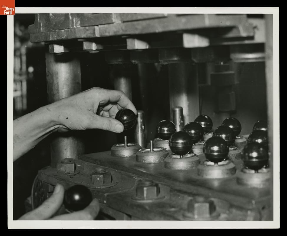 Molded Soybean Gearshift Knobs in Ford Assembly Process, 1940