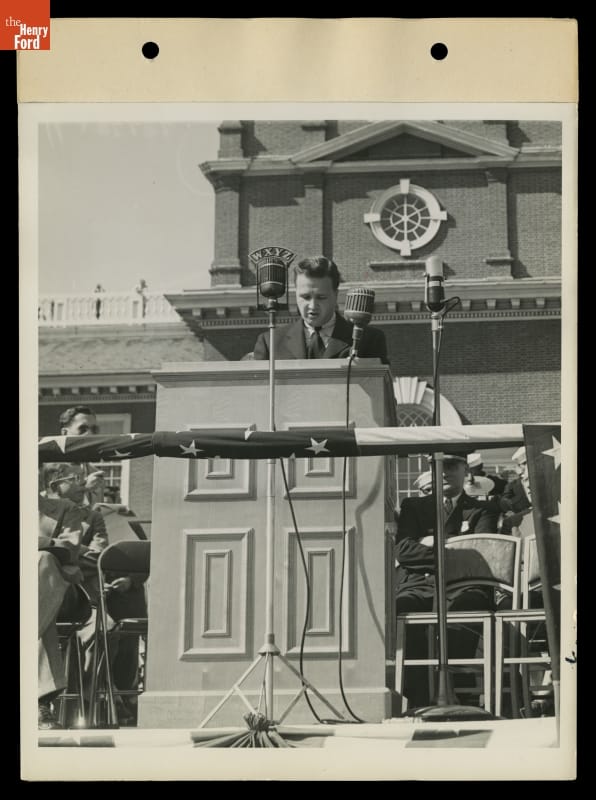Henry Ford II Speaking during the Presentation of the Vought-Sikorsky VS-300 Helicopter to Henry Ford Museum, October 7, 1943