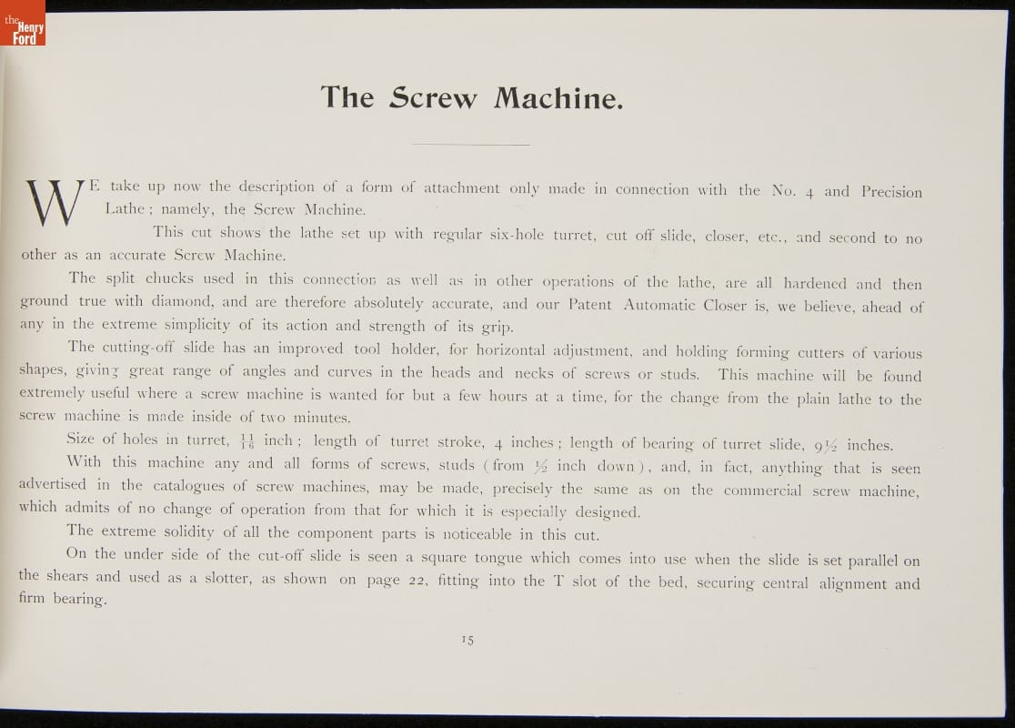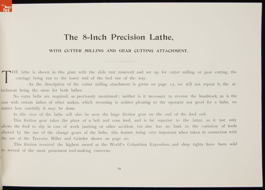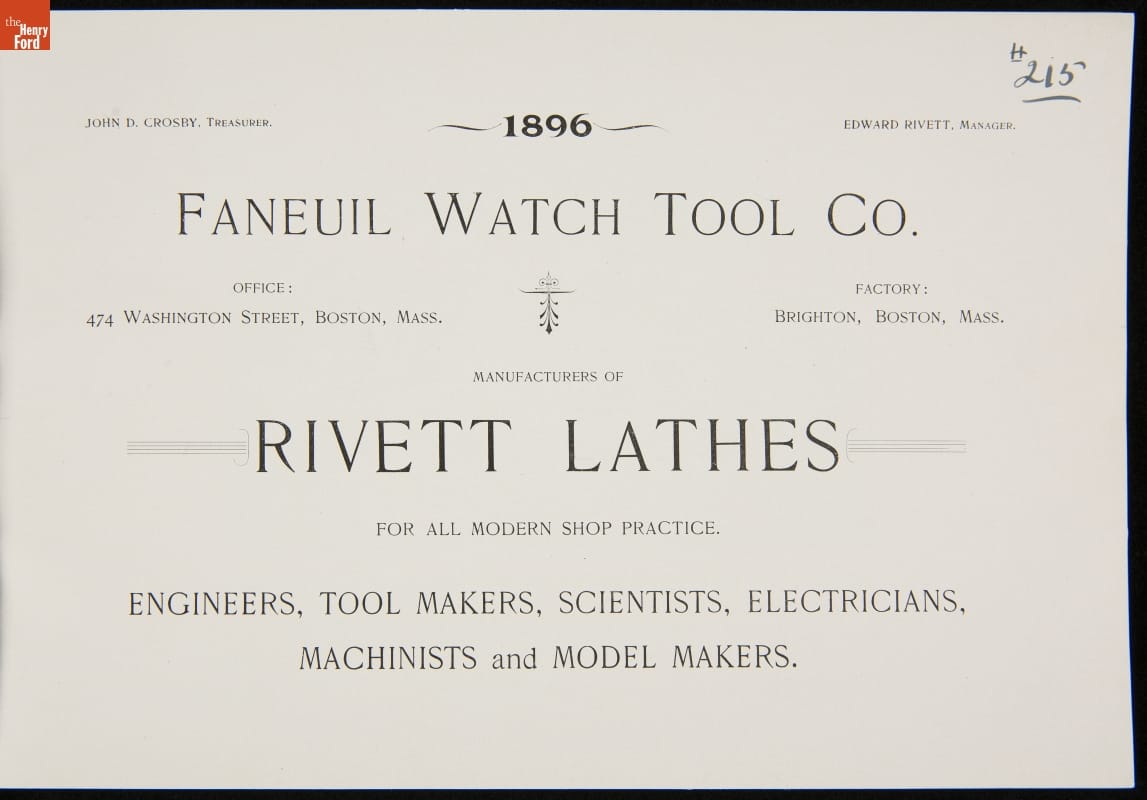 Faneuil Watch Tool Company Catalog, "Rivett Lathes," 1896