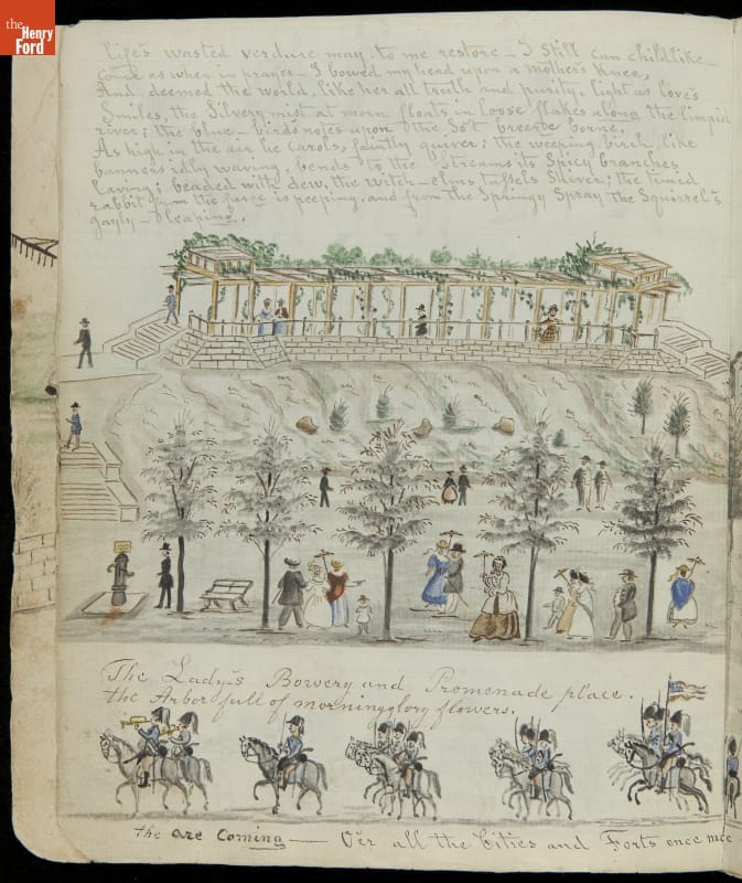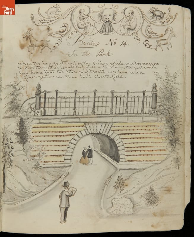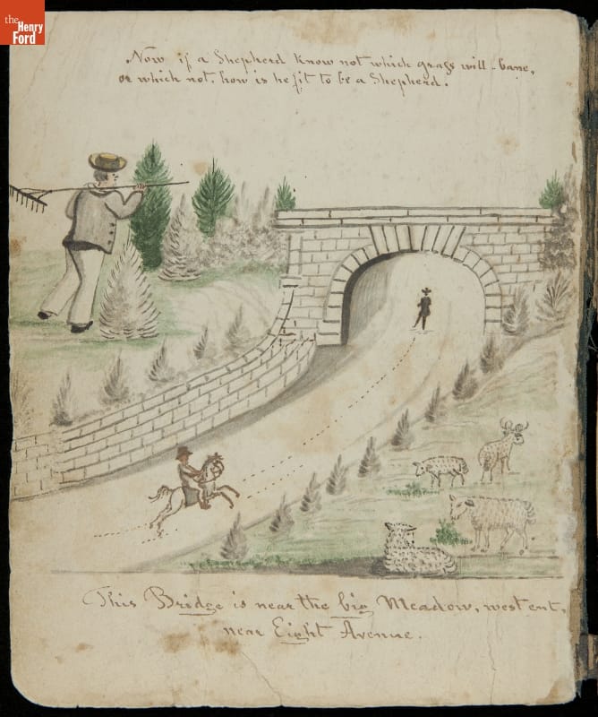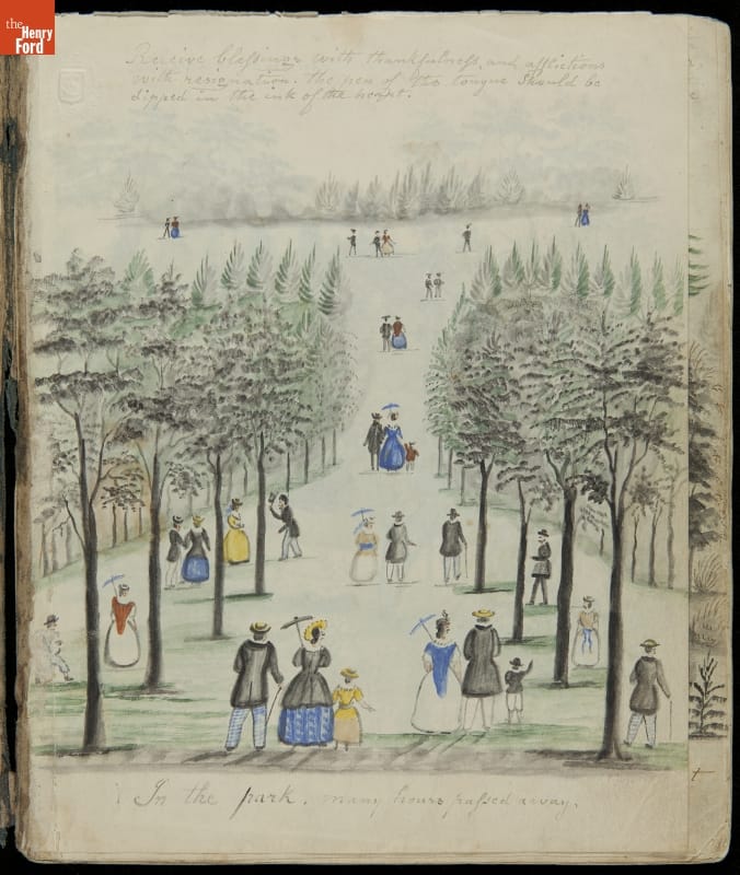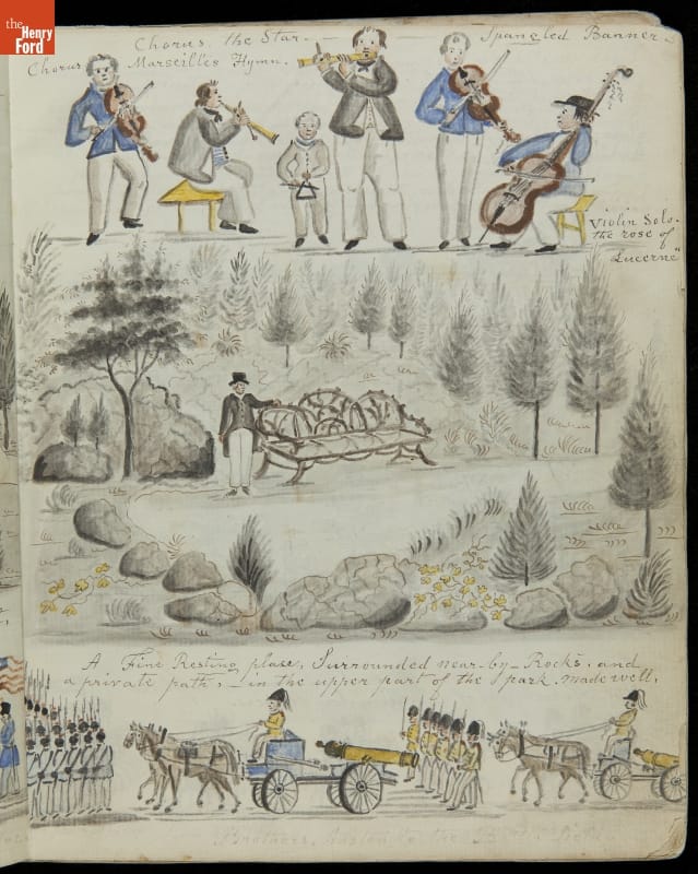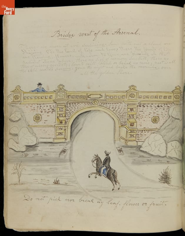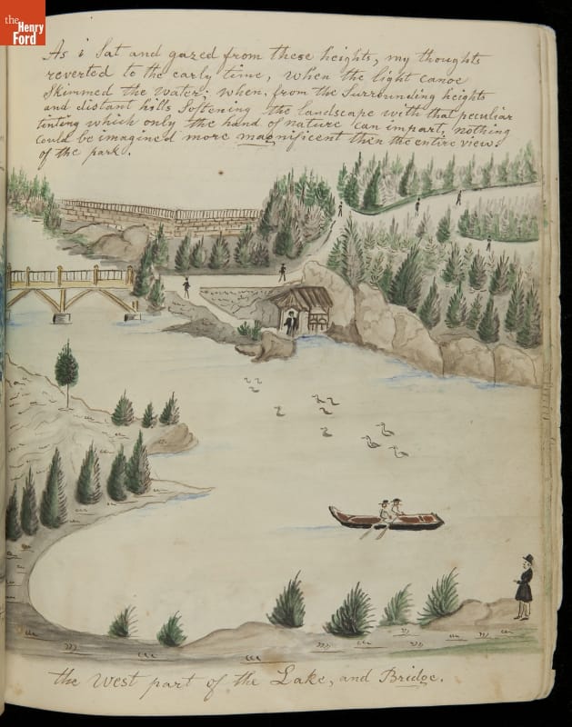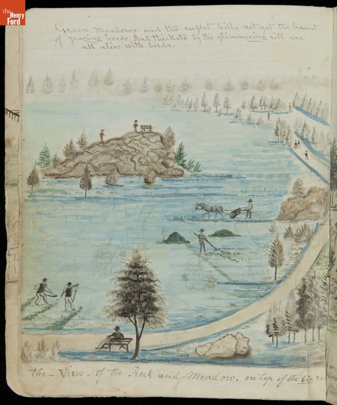 Lewis Miller is known today as a Pennsylvania folk artist. A carpenter by trade, Miller is noted for his many journals, illustrated with watercolors of historical and everyday events. He traveled widely in Europe and America. This 54-page album documents the early features and structures of New York City's Central Park--the greatest landscape project in 19th-century America.