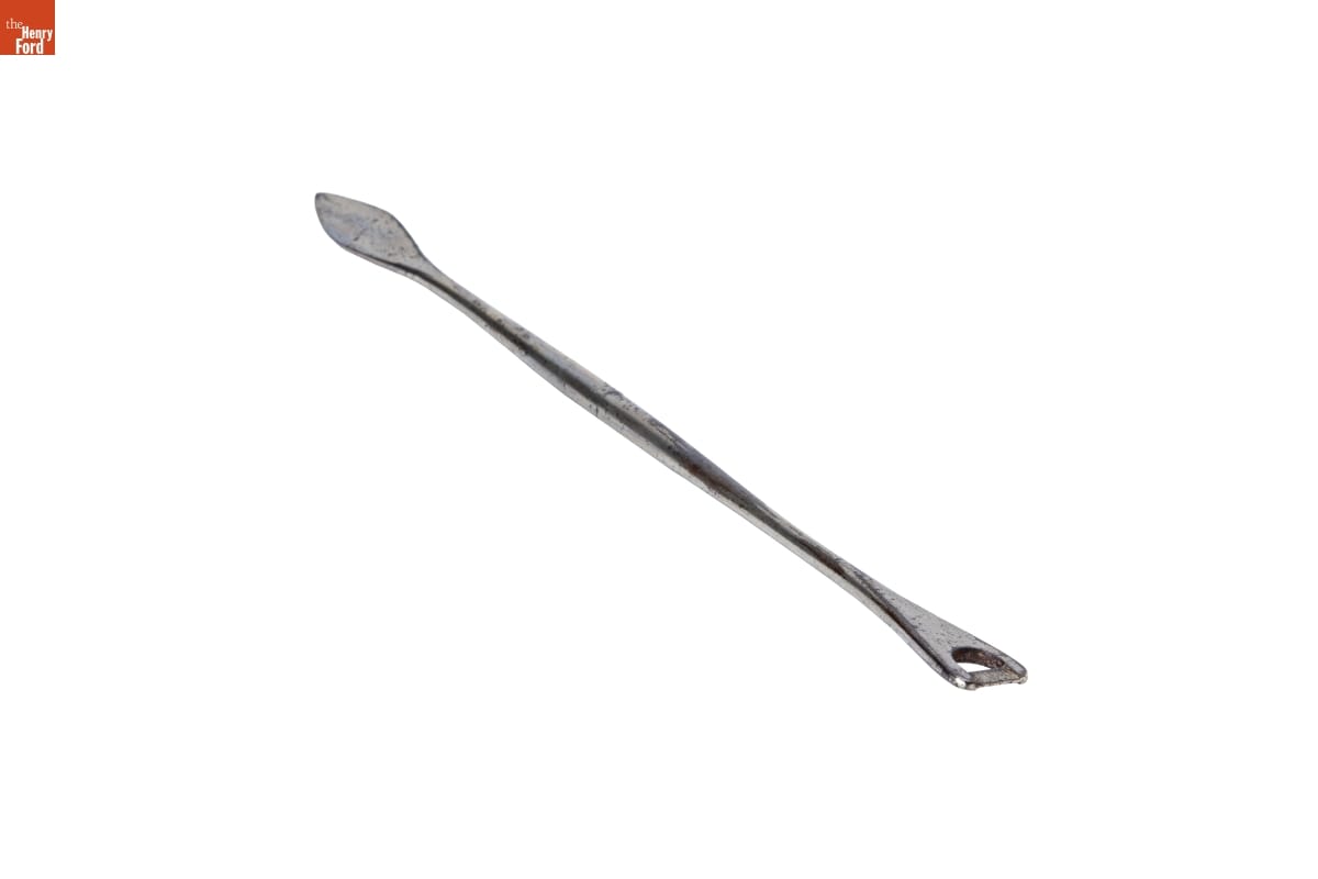 Veterinarians used a seton needle to insert a thread or cord (called a seton) beneath the skin around a wound or abscess to encourage drainage. This needle belonged to M. C. Bigelow, a veterinary doctor from Flushing, Michigan.