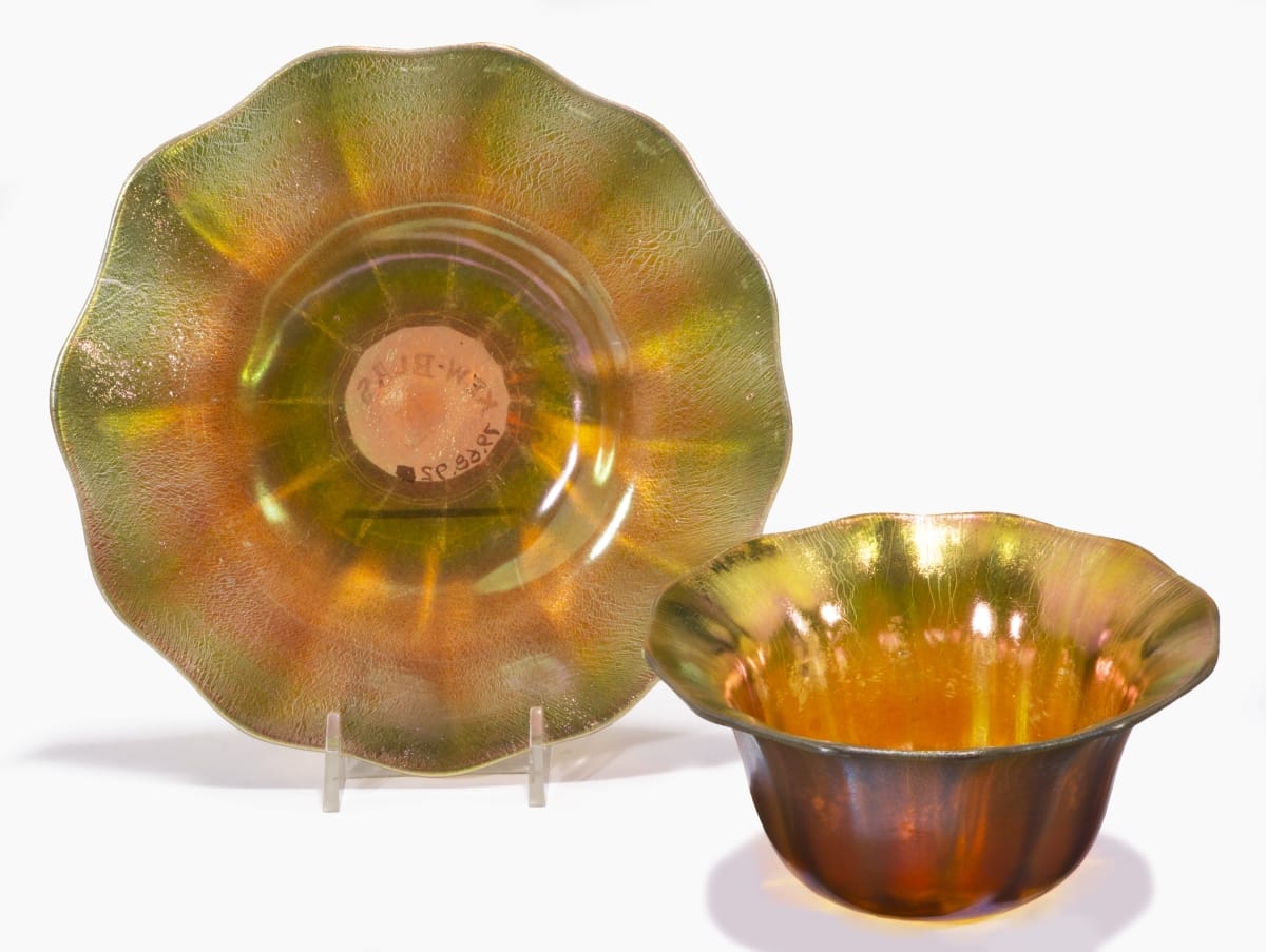 Art Glass is ornamental and decorative glass dating from the mid-to-late 19th century through the early 20th century. Makers of Art Glass employed newly developed technologies for producing vibrant colors and surface textures. This is most famously seen in the iridescent surfaces of Louis Comfort Tiffany and his contemporaries, although Art Glass took many shapes and forms.