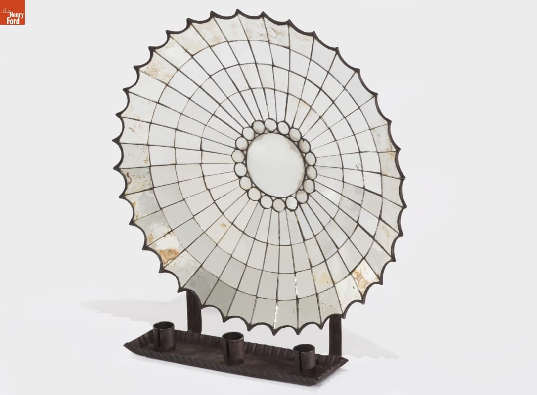 In the early 1800s, candles helped dispel dark nights, but single candles cast feeble light. Inventive Americans found ways to refocus light. This wall sconce used a pan-shaped reflector with scores of cut, mirrored glass pieces to redirect light from three candles towards a room's dark interior.