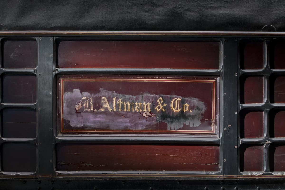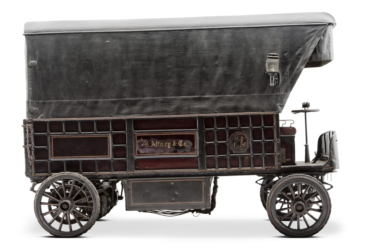 B. Altman and Company, a New York City department store, purchased this electric truck from F. R. Wood and Son around 1900. Altman employed horse-drawn delivery wagons but began to experiment with electric trucks in 1898 as a cost cutting measure. Electric trucks dispensed with the care and maintenance costs of horses. This truck made twice-daily trips from a warehouse to a distribution center.