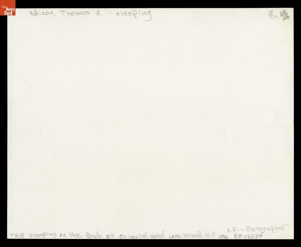 Thomas Edison Asleep at the Oriental Hotel, Manhattan Beach, Snapshot by Henry Ford, 1896