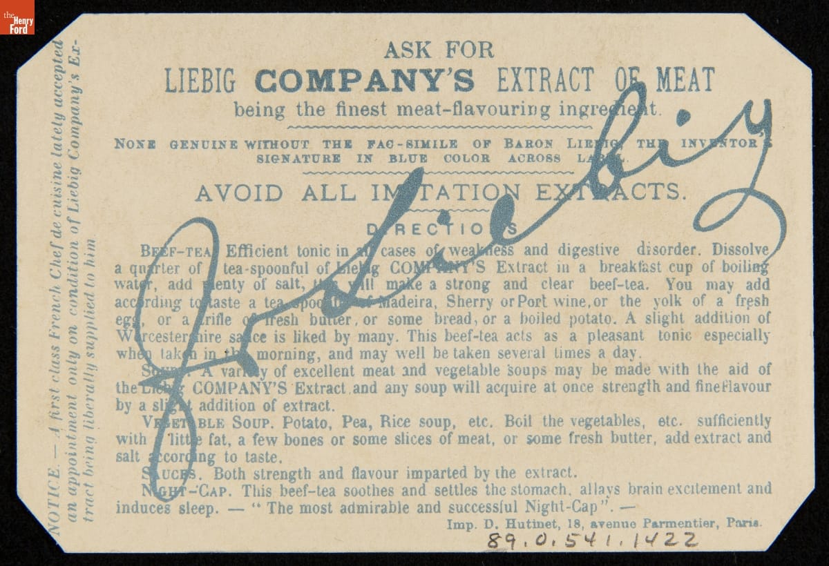 Trade Card for Liebig Extract of Meat Company Products, 1880-1900