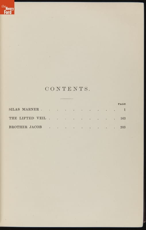 Book Used by Katharine Wright, "Silas Marner, The Lifted Veil, and Brother Jacob, 1860