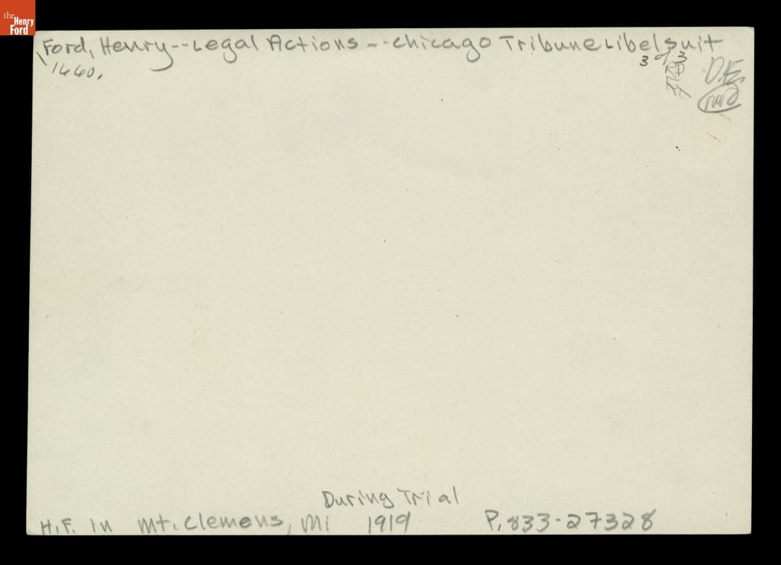 Henry Ford in Mount Clemens, Michigan, during the Chicago Tribune Libel Suit, 1919