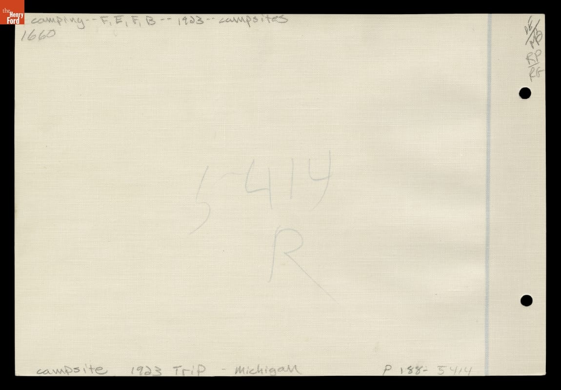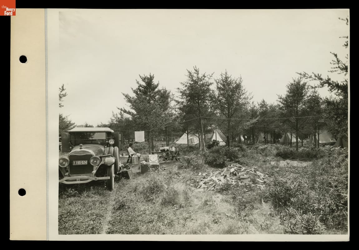 In 1923, Henry Ford, Thomas Edison and Harvey Firestone embarked on one of their famous camping trips, this time to northern Michigan. Various support staff were needed to maintain camp including Ford's personal chef, Thomas Sato. In this picture, Sato sits outside the commissary truck while the campers enjoy his cooking.
