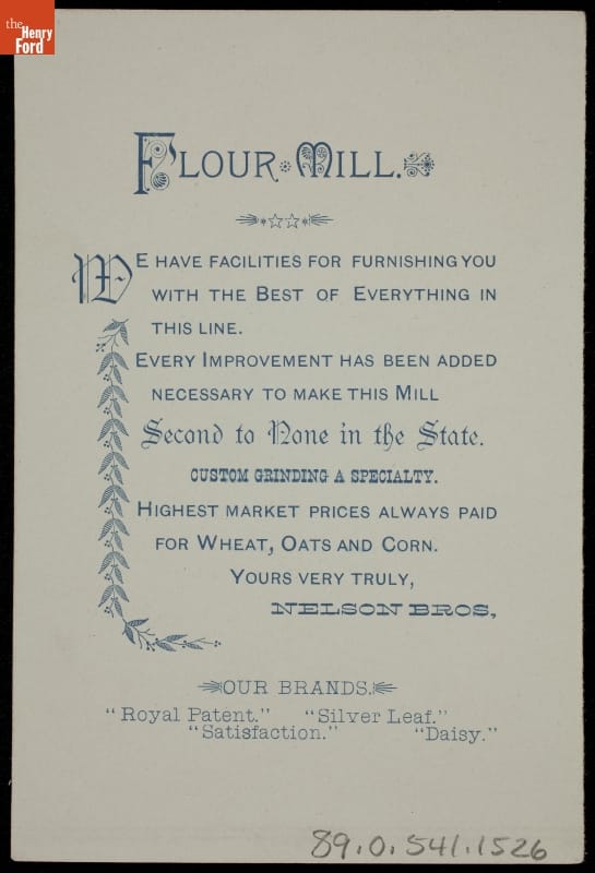 Trade Card for the Nelson Brothers Flour Mill, Morenci, Michigan, 1885