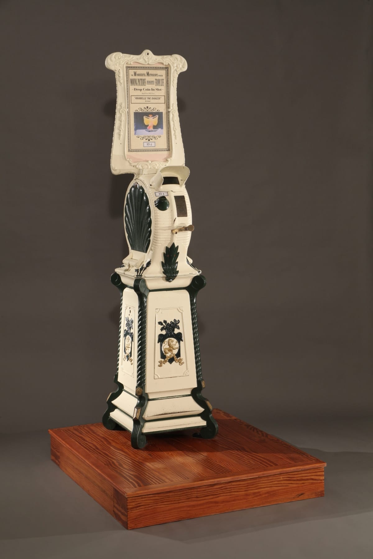 The mutoscope was developed in 1895 to rival Thomas Edison's kinetoscope. Mutoscope motion pictures were a single-viewer experience; viewers would hand-crank the machine at their preferred speed to watch a flipbook movie through a peephole. The production arm of American Mutoscope and Biograph Company was re-named Biograph Company and was a pioneering film studio during the silent movie era.