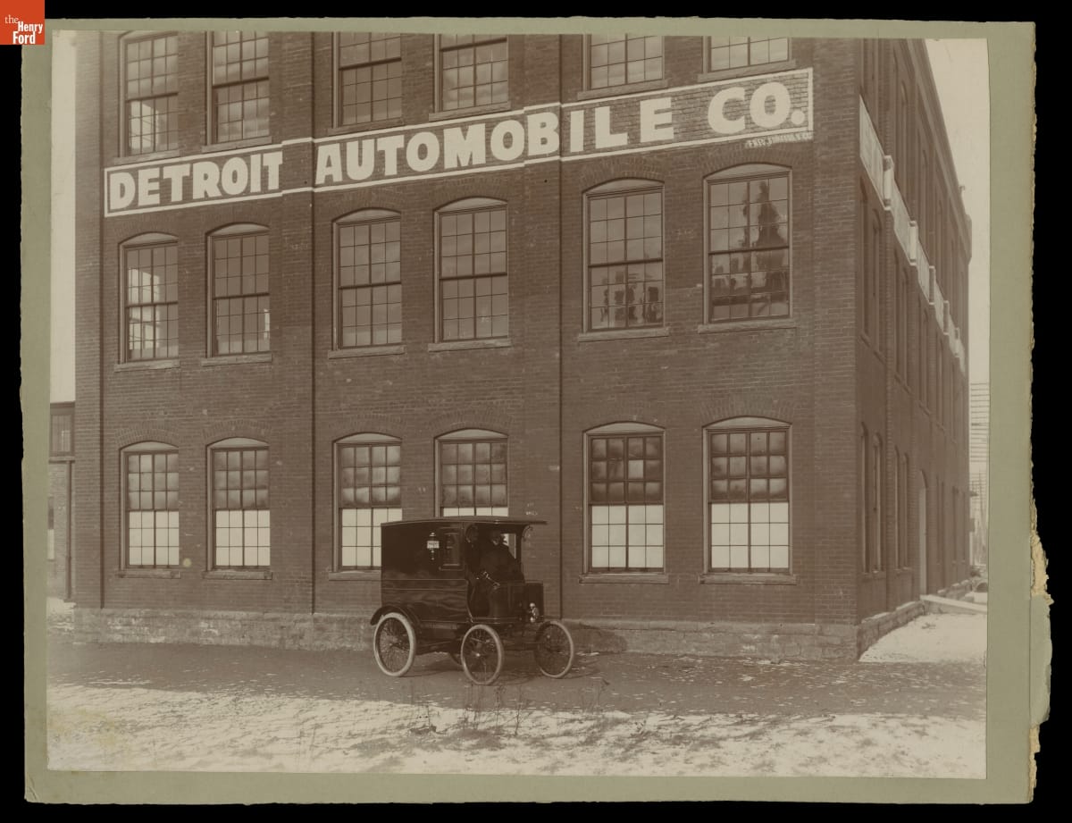If the name Detroit Automobile Company does not sound familiar it is because the company lasted no more than eighteen months. It was Henry Ford's first effort at building a motor vehicle and it was not successful. Here the company's first product, a delivery truck, parked in front of the factory on Cass Avenue in Detroit. Despite a glowing description in the Detroit News-Tribune, the truck was apparently not a very good vehicle and the Detroit Automobile Company went out of business in January 1901. It would take two more companies and three more years before Henry Ford would become a successful automobile manufacturer.