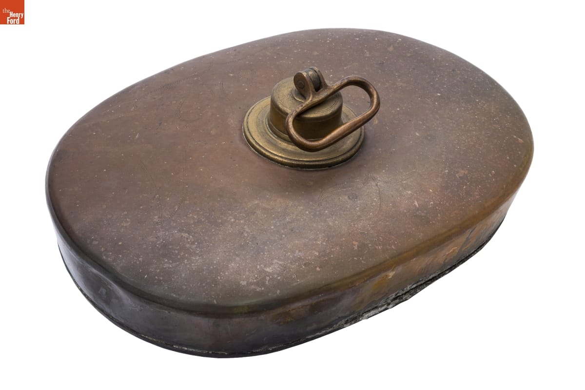 Foot warmers solved the problem of cold feet in past generations. Some warmers held charcoal, others held hot water. Pottery, tin, and soapstone were the favored materials to conduct the heat. The warmer was kept under the feet, then the legs and feet were tucked into a blanket, providing welcome warmth in a cold carriage or unheated church.