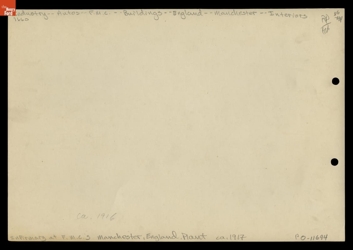 Infirmary at the Ford Assembly Plant in Manchester, England, 1916-1917
