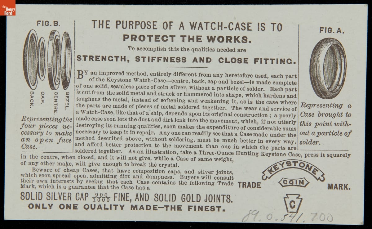 Trade Card for Keystone Watch Case Company and Jeweler, F.J. Yesbera, 1880-1900