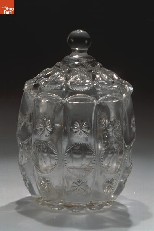 Middle-class Americans in the late 19th century arrayed their dining tables with affordable pressed-glass tableware. These items, usually sold in sets, came in a wide variety of patterns, colors and styles. These decorative pieces -- like this sugar bowl -- communicated a family's status and taste to visitors and guests.