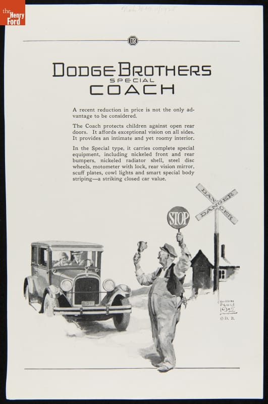 Dodge Brothers introduced its all-steel auto bodies -- the industry's first -- for 1923. This 1926 advertisement promotes the company's two-door Special Coach. Dodge Brothers' upmarket Special line included nickeled bumpers and radiators, steel disc wheels, and a motometer radiator cap, among other features. The Special Coach started at $1,135.