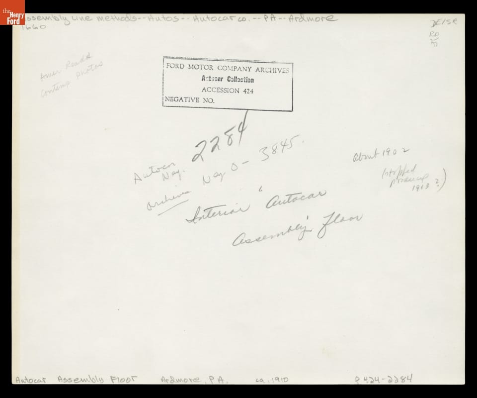 Assembly Room at the Autocar Company, Ardmore, Pennsylvania, 1901-1912
