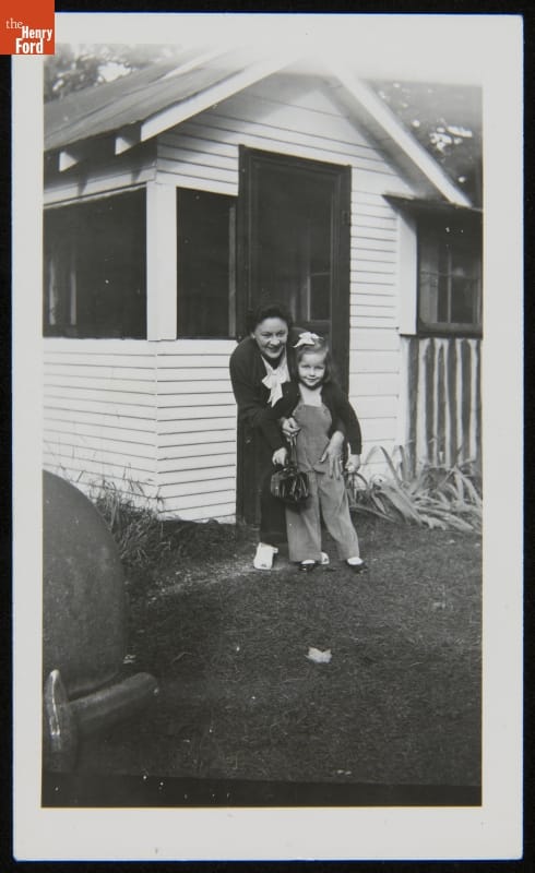 Mother and Daughter at Motel Tourist Cabin, St. Ignace, Michigan, circa 1945