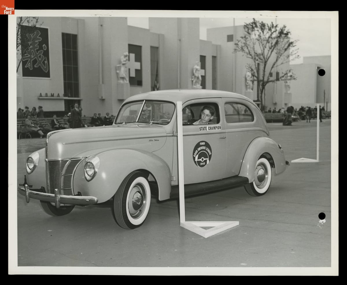 Ford Good Drivers League Michigan State Champion Glenn H. Merithew Driving a Ford Deluxe at the New York World's Fair, 1940