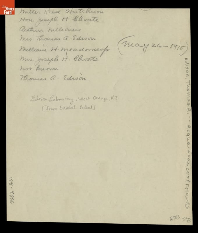 Mr. and Mrs. Joseph Choate and Mina Edison with Thomas Edison and His Associates, May 1915
