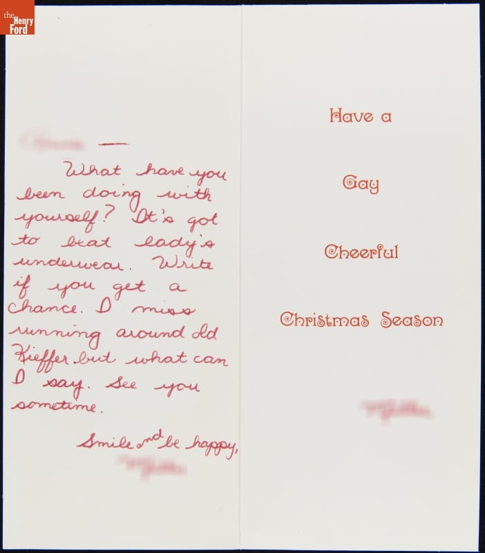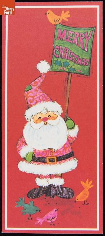 Mailing colorful, commercially designed greeting cards was a 20th-century American tradition. During the holidays, friends and neighbors commonly exchanged cards wishing one another a Merry Christmas or Happy New Year. Publishers sometimes decorated these cards with images of Santa Claus, the legendary holiday gift giver.