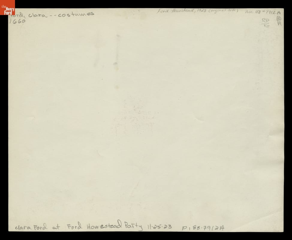 Henry Ford's wife, Clara, and her friends dressed up in 19th century clothing during an old-fashioned dancing party the Fords hosted at Henry's birthplace. Henry Ford was restoring the Dearborn, Michigan, farmhouse as he remembered it during his childhood. By the mid-1920s, Ford had begun collecting everyday objects of the American past -- perhaps these garments were among the antiques he was gathering.