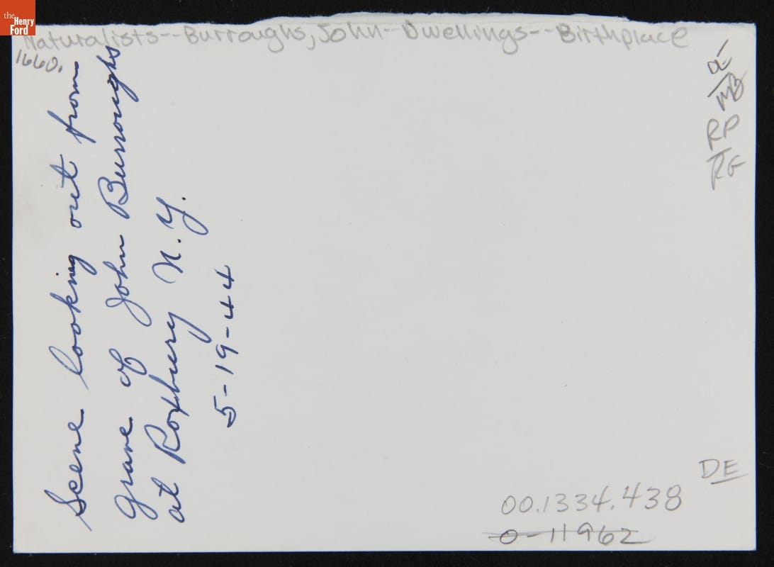 Naturalist John Burroughs was buried near the Roxbury, New York, farm where he was born. The site provided beautiful vistas of the surrounding Catskill Mountains, a landscape that inspired Burroughs throughout his career. Boyhood Rock, a large boulder Burroughs frequented during his youth and cherished his entire life, marks his gravesite.