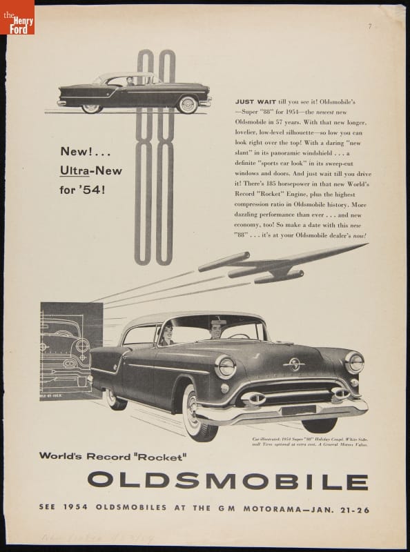 1954 General Motors Motorama Advertisement, "New!...Ultra-New 88 For '54...World's Record 'Rocket' Oldsmobile"