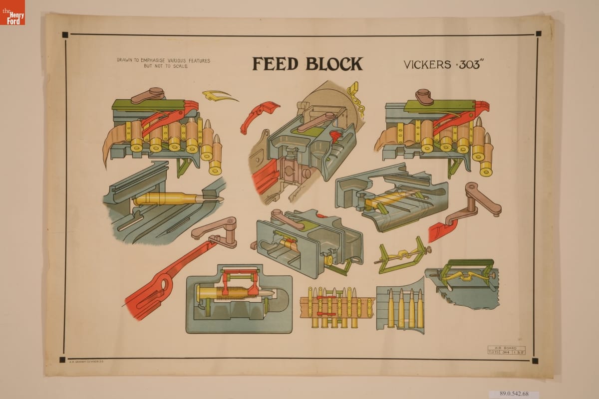 Cutaway Illustration, Vickers .303" Machine Gun Feed Block, circa 1917