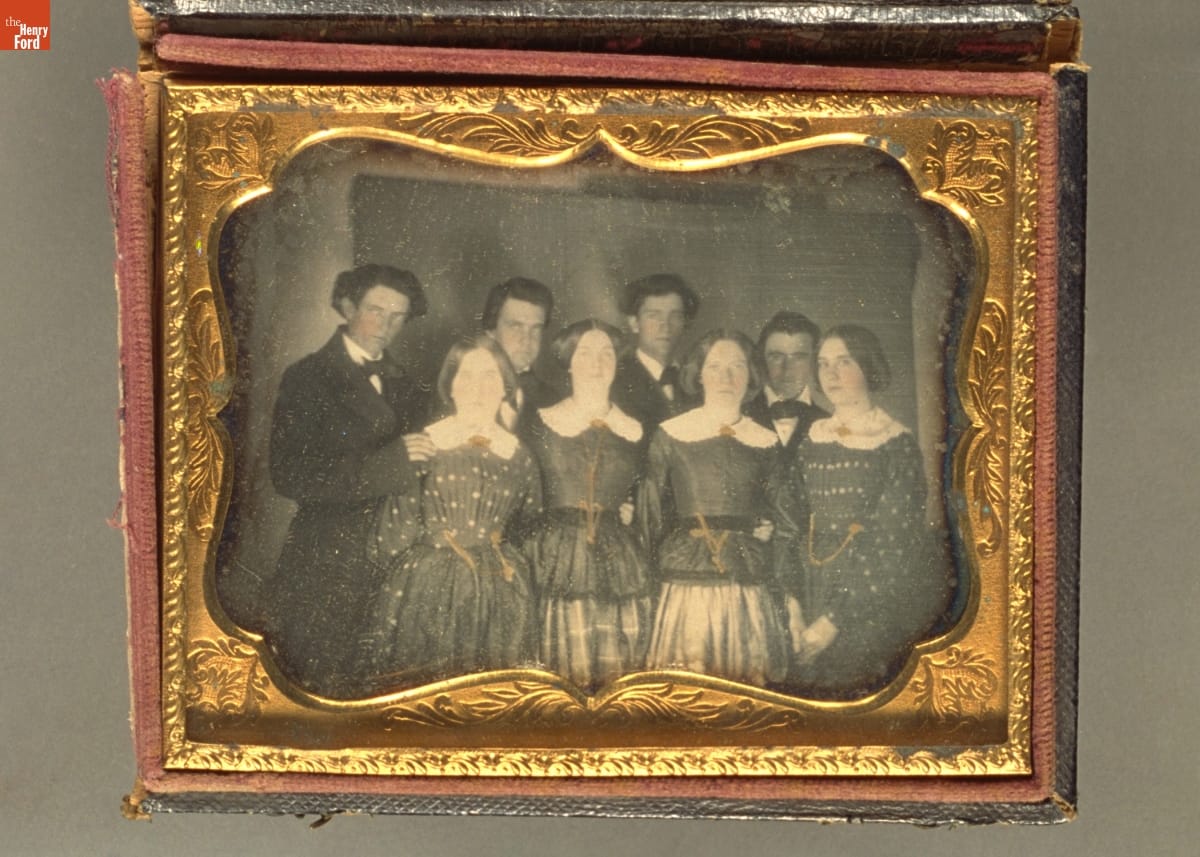 The daguerreotype, popular in the early 1840s-late 1850s, was the first form of photography available to the public. Sheets of silver-plated copper--polished to a mirror finish--were bathed in photosensitive vapors, and exposed in cameras. In formal studios and traveling booths, photographers created affordable portraits. For the first time, people saw their likenesses--fixed permanently in time and place.