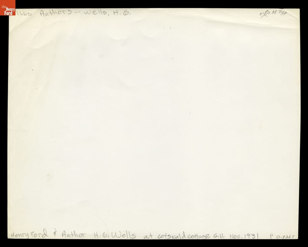 Henry Ford and H. G. Wells at Cotswold Cottage in Greenfield Village, 1931