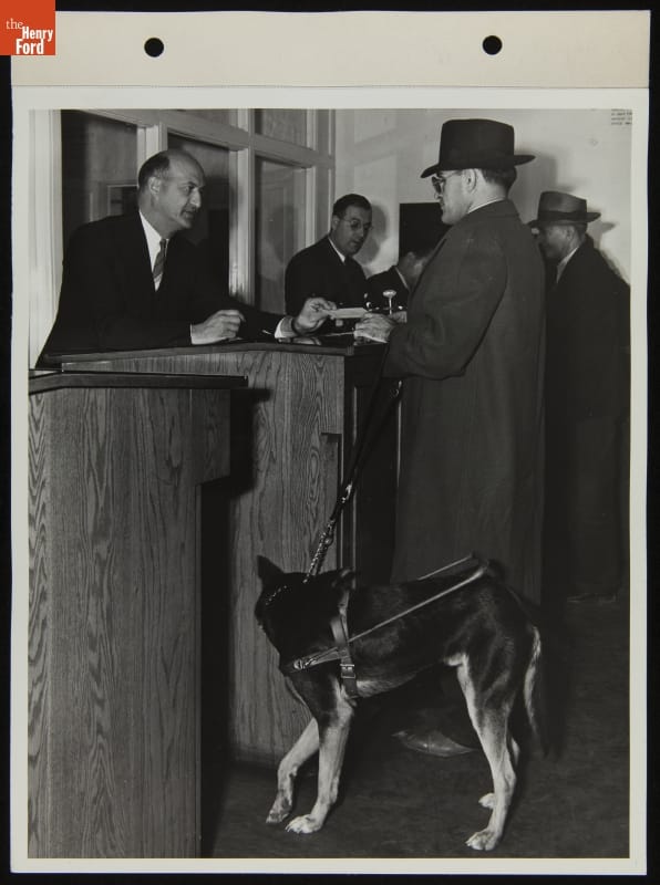 Henry Ford believed in providing equal employment opportunities to people with disabilities -- a practice he began in the early years of his company. During World War II, Ford employed thousands of workers with disabilities. In October 1942, Ford Motor Company photographed Sylvester Rypkowski and his service dog, Blackie, as they became members of the Rouge plant's workforce.