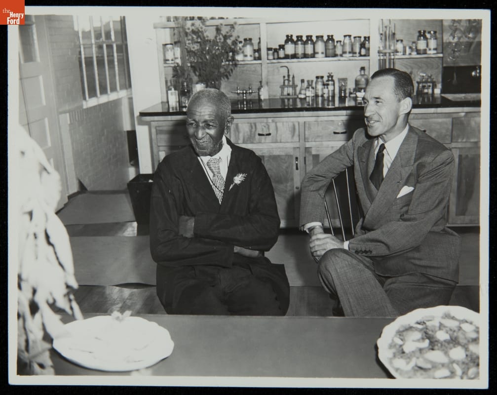 George Washington Carver and Edsel Ford at the Carver Nutrition Laboratory, Dearborn, Michigan, 1942