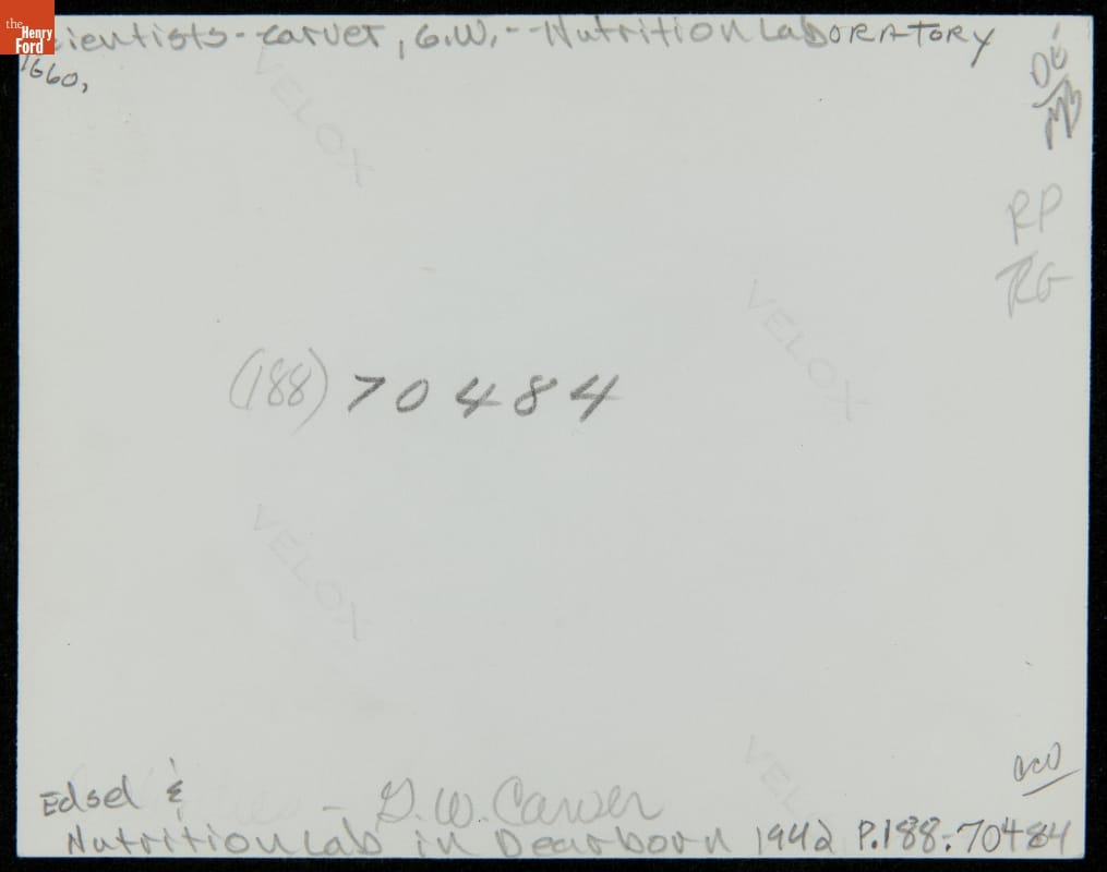 In 1942, Henry Ford showed his admiration for his friend and colleague George Washington Carver by naming a Ford Motor Company nutrition laboratory after him. This was appropriate: Carver had dedicated his career to experimental agriculture and to improving farmer nutrition and health as well as crop yields. Though frail, Carver traveled to Dearborn for the dedication. Edsel Ford was also present.