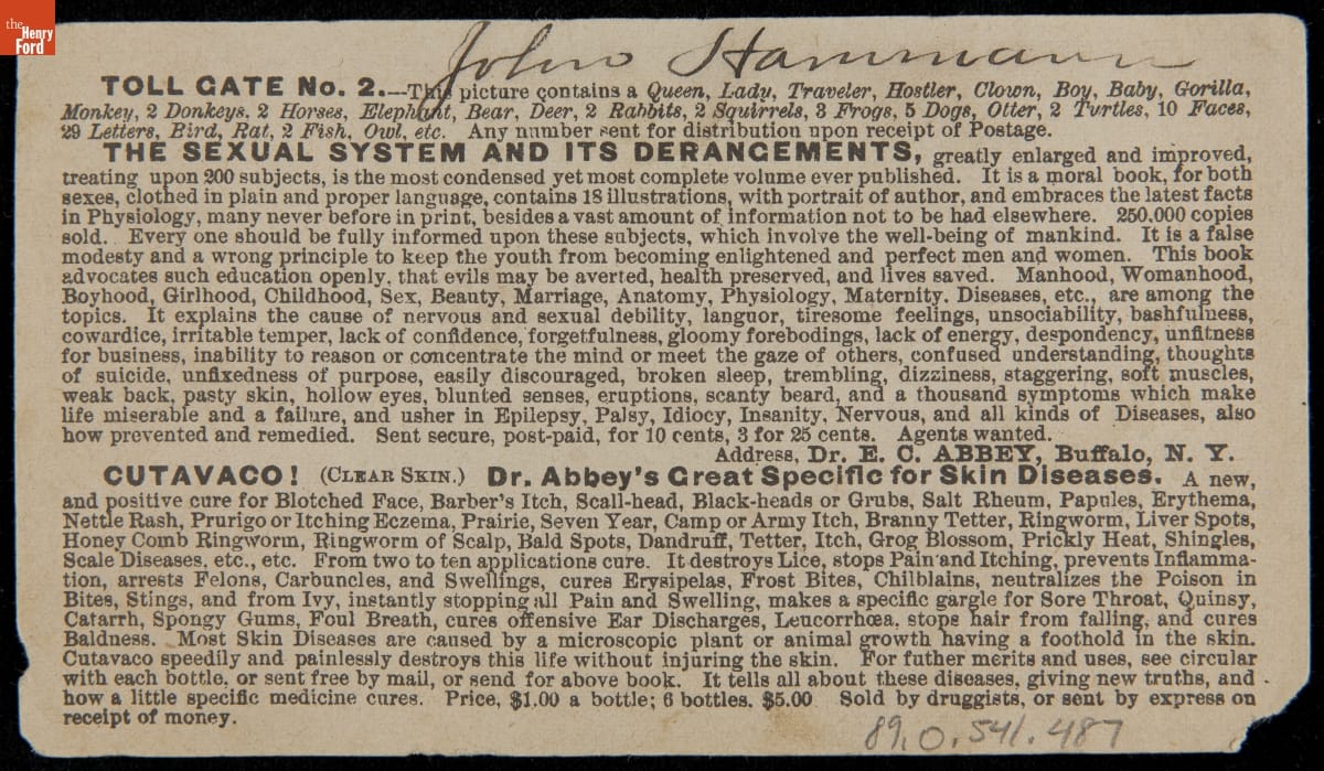 Trade Card for Dr. Abbey's Cutavaco Medicine, 1879