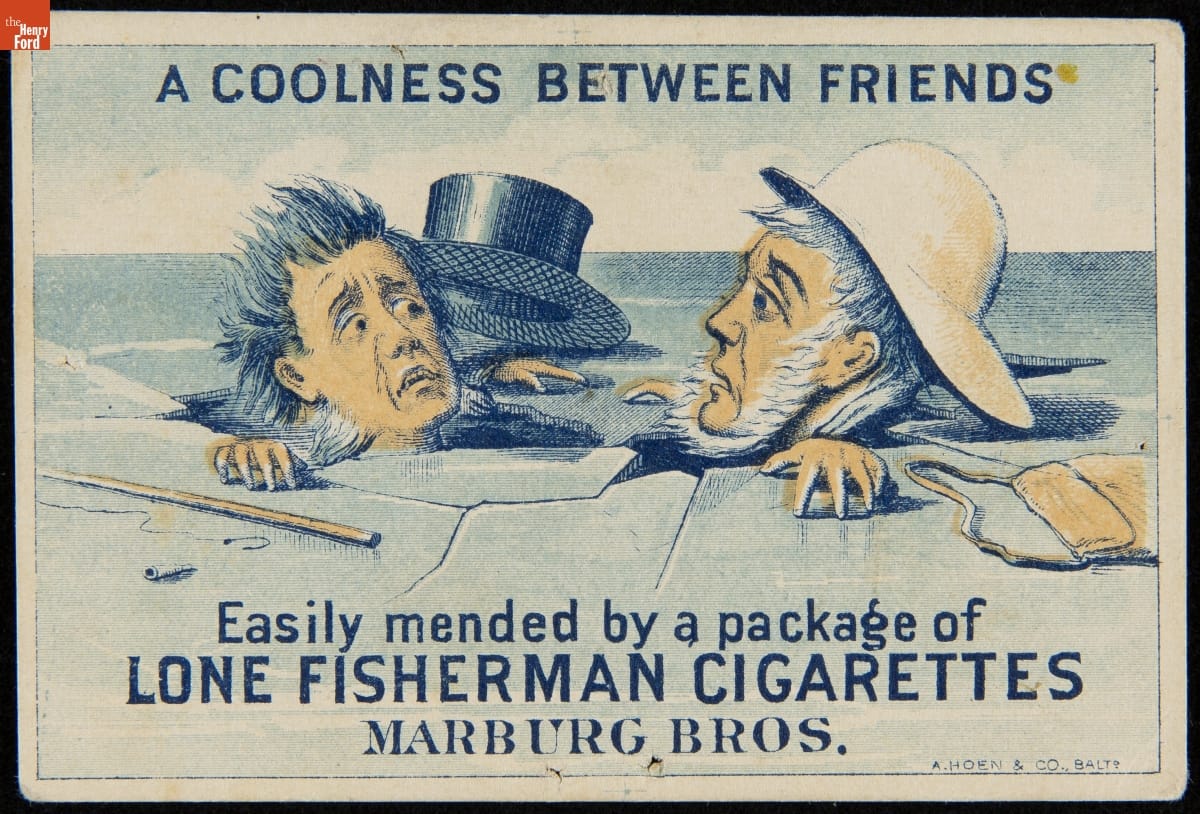 Trade Card for Lone Fisherman Cigarettes, Marburg Bros., 1865-1891