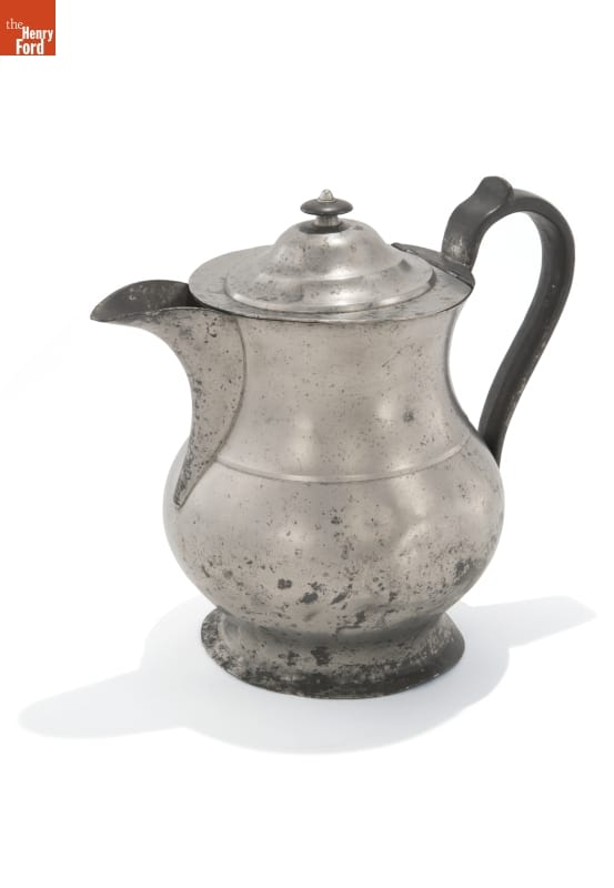 Pewter goods could be found in many American homes and public buildings in the late 18th and early 19th centuries. Most Americans of modest means could afford to have pewter spoons, tankards, dishes, plates or other items, such as this covered pitcher.