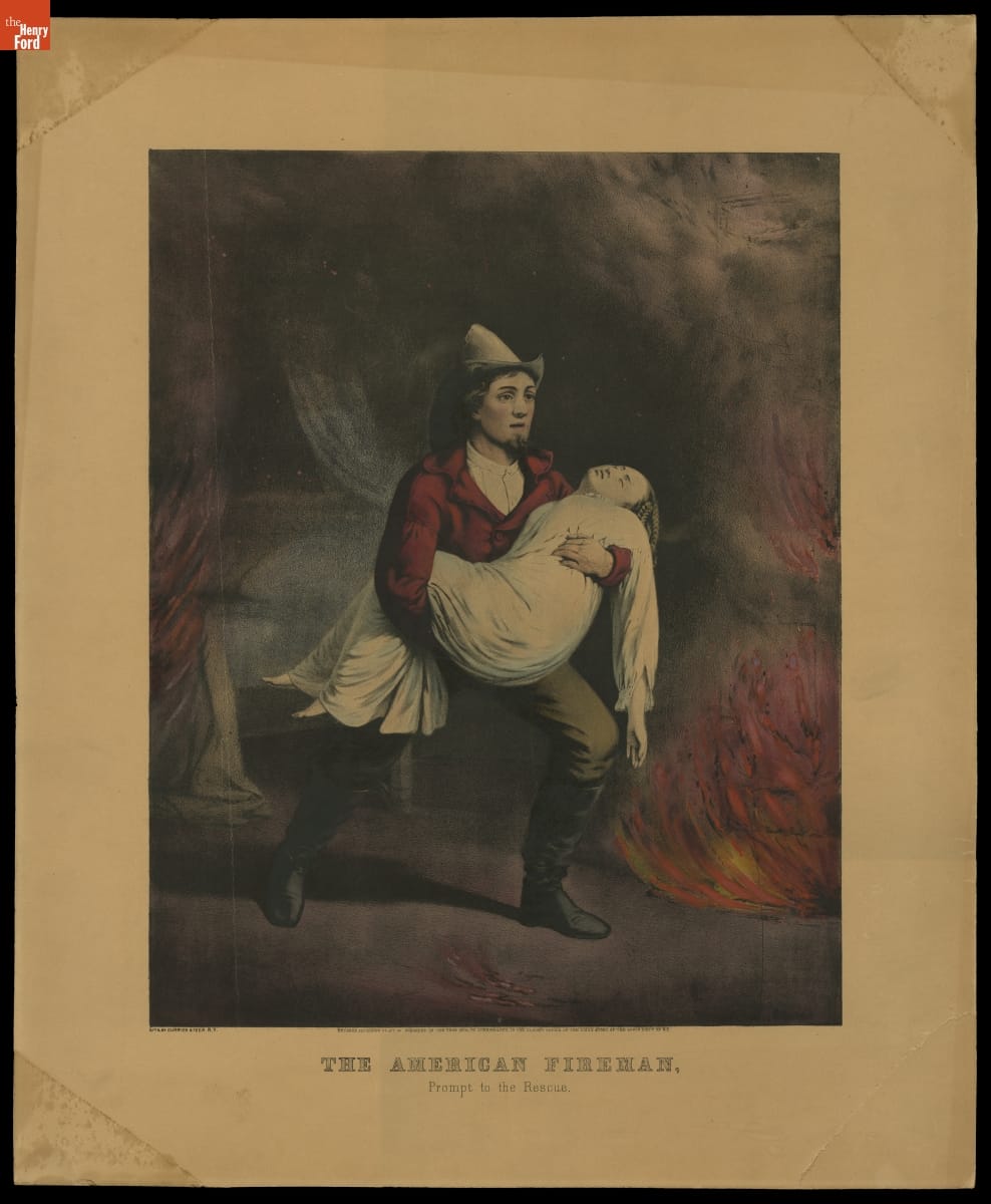 Lithograph, "The American Fireman, Prompt to the Rescue," 1858