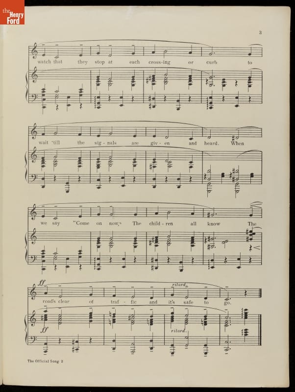 In 1937, Lucille Oldham wrote this song about the duties of the American Automobile Association's (AAA) Safety Patrol. AAA had launched the Safety Patrol program in 1920 to protect school children from traffic dangers. School-aged patrollers, under adult supervision, wear belts and badges and continue to help their classmates make it safely to school.