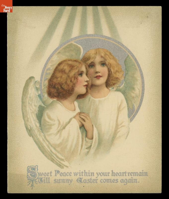 Sending greeting cards and postcards for the Easter holiday became popular in the United States by the 1880s. Publishers made cards with themes of a religious nature as well as secular decorations to celebrate the arrival of spring. Artists working for these publishers illustrated the cards with images symbolic of the season, such as crosses, angels, flowers, eggs, children, birds, and rabbits.