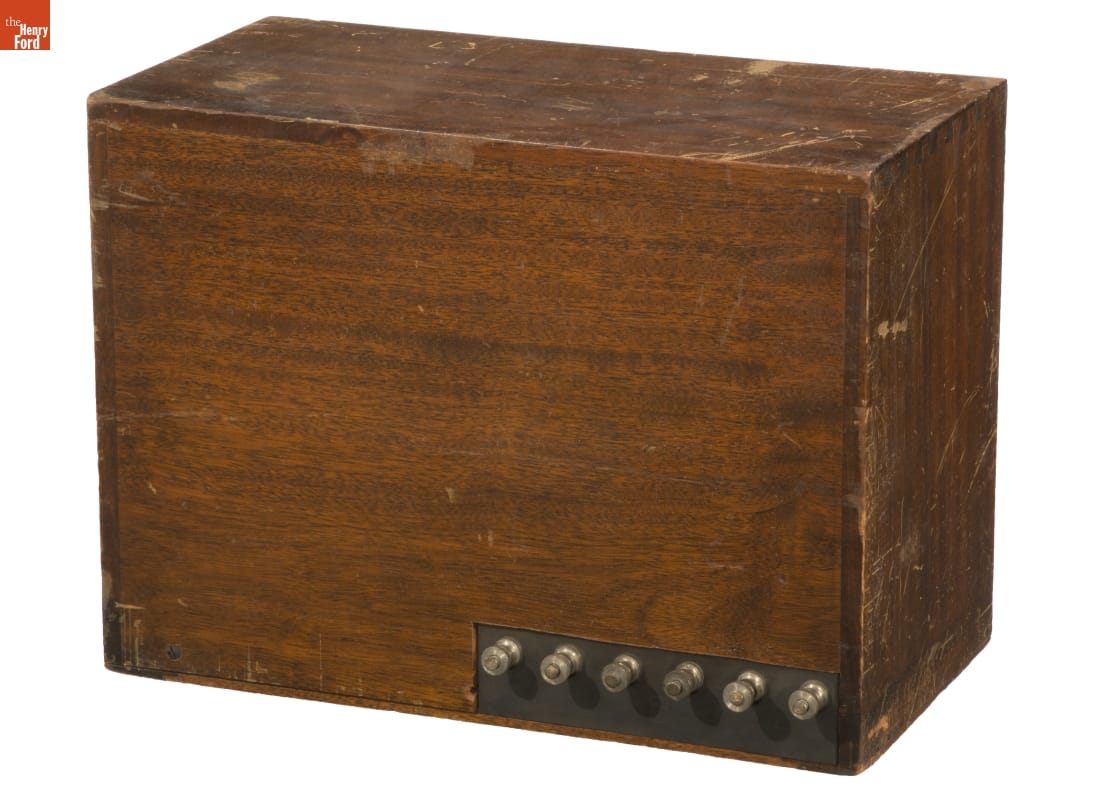 This is a Marconi Wireless model 4-VA amplifier. The device sent a weak radio signal through four amplifying tubes in succession, transforming it into a signal strong enough to be reproduced through headphones or a speaker. This was among the last products produced by American Marconi before their merger into the Radio Corporation of America (RCA).