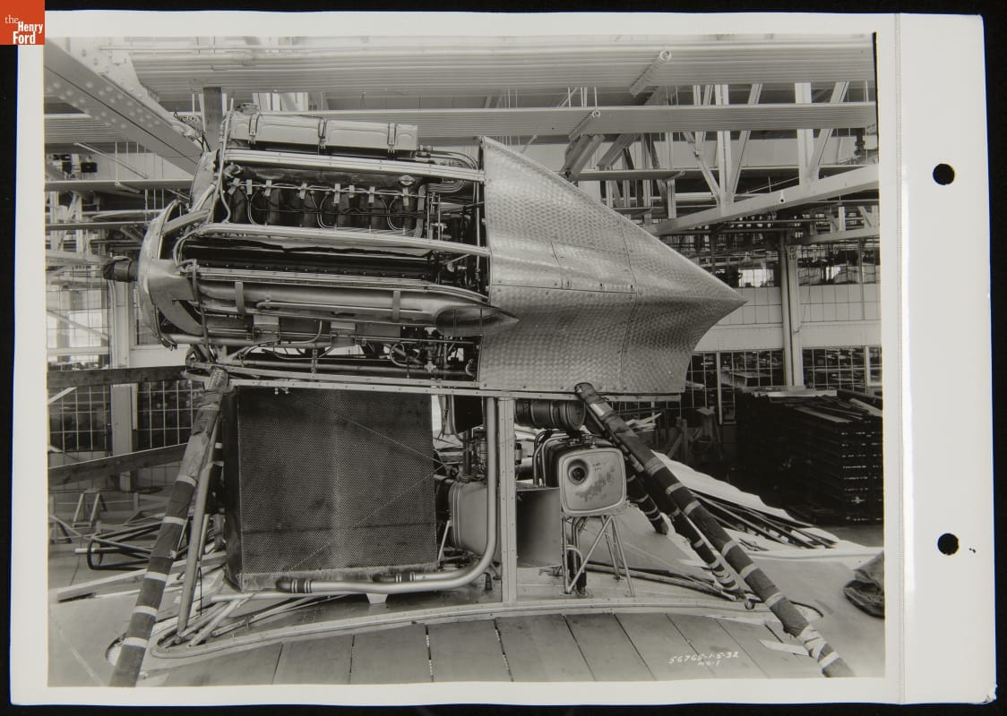 Ford Motor Company's Tri-Motor, built from 1926-1933, flew in many early American airline fleets. The all-metal airplane was rugged, dependable, and equally adaptable to passenger and freight service. Tri-Motors were built with some of the same mass production techniques used in Ford's automobile plants. This version, the 14-AT, featured three Hispano-Suiza Engines. This photograph reveals the interior of the central engine.