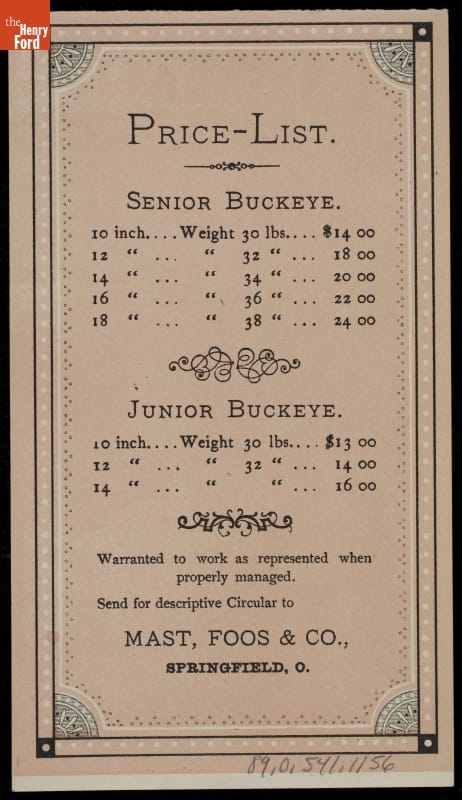 Trade Card for Buckeye Lawn Mowers, Mast, Foos & Co., 1870-1900
