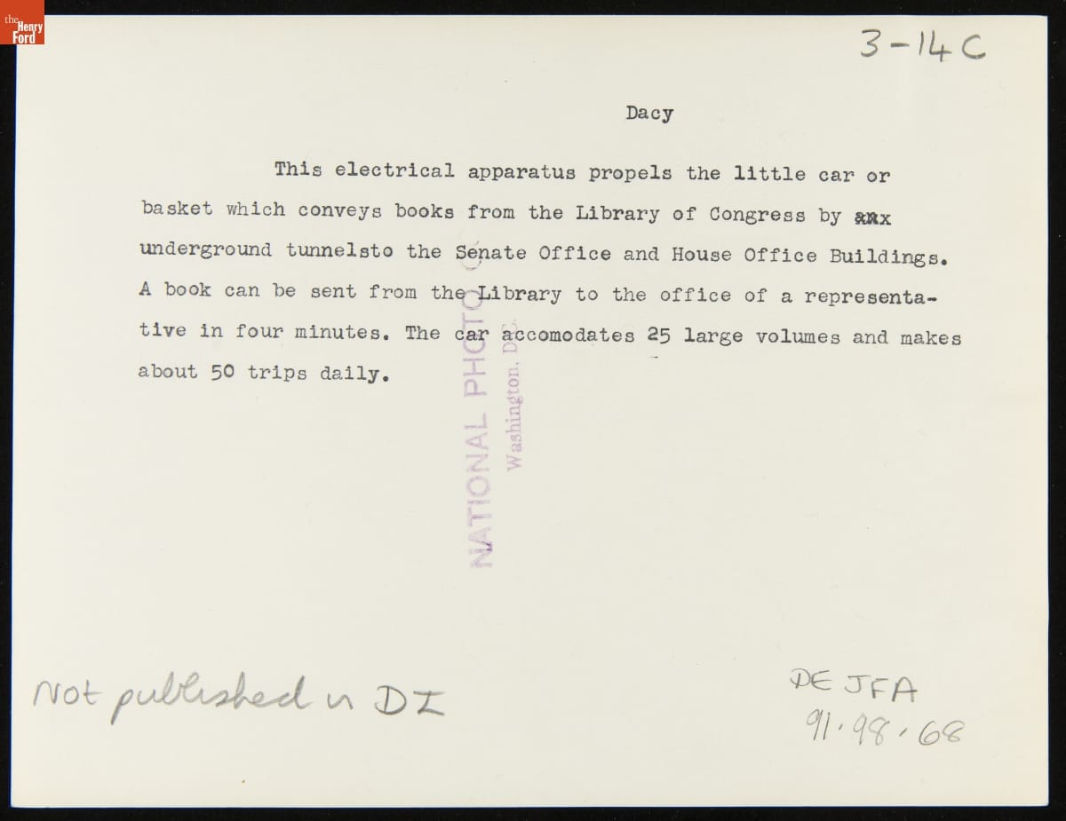 Men Operating a Machine to Send Books from the Congressional Library to Senate and House Office Buildings, 1922