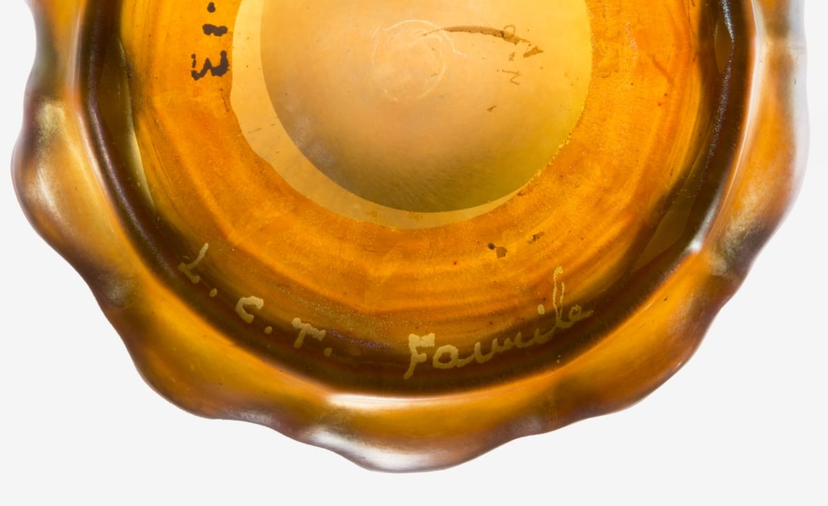 Art Glass is ornamental and decorative glass dating from the mid-to-late 19th century through the early 20th century. Makers of Art Glass employed newly developed technologies for producing vibrant colors and surface textures. This is most famously seen in the iridescent surfaces of Louis Comfort Tiffany and his contemporaries, although Art Glass took many shapes and forms.